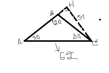 В равнобедренном треугольнике ABC с основанием AC угол B равен 120 градусов. Высота треугольника, проведённая из вершины C, равна 31. Найдите длину стороны AC.