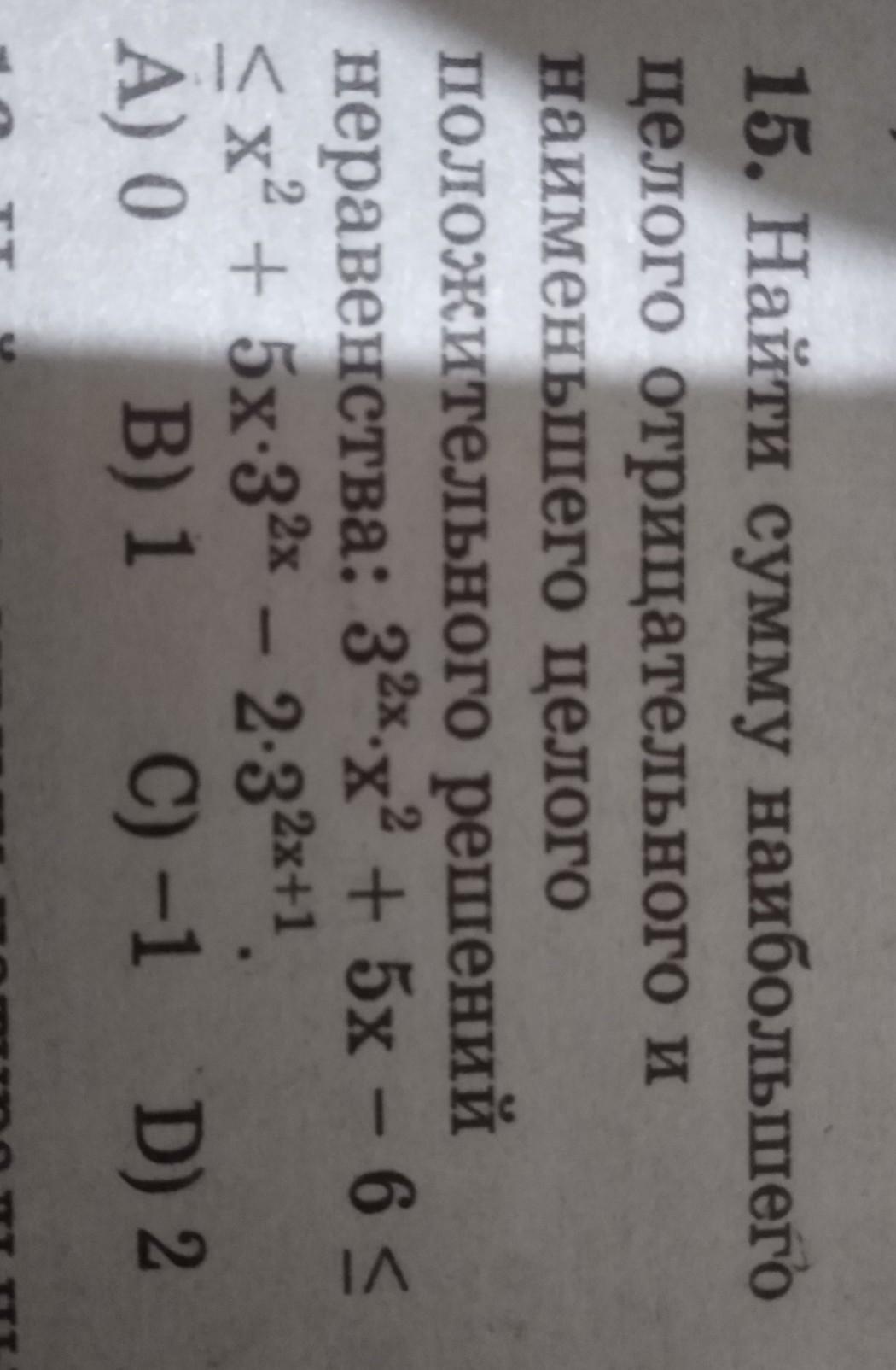 найдите сумму наибольшего целого отрицательного и наименьшего целого положительного решений