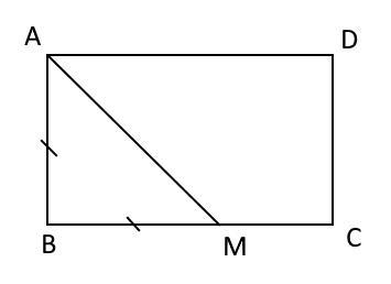 Кути в прямокутнику дорівнюють 90°, тому бісектриса кута А поділила його на два кути по 45°. Утворився прямокутний ΔАВМ, в якому АВ=ВМ, тому що ∠ВМА=∠МАВ, і з цього визначаємо, що ΔАВМ рівнобедрений.