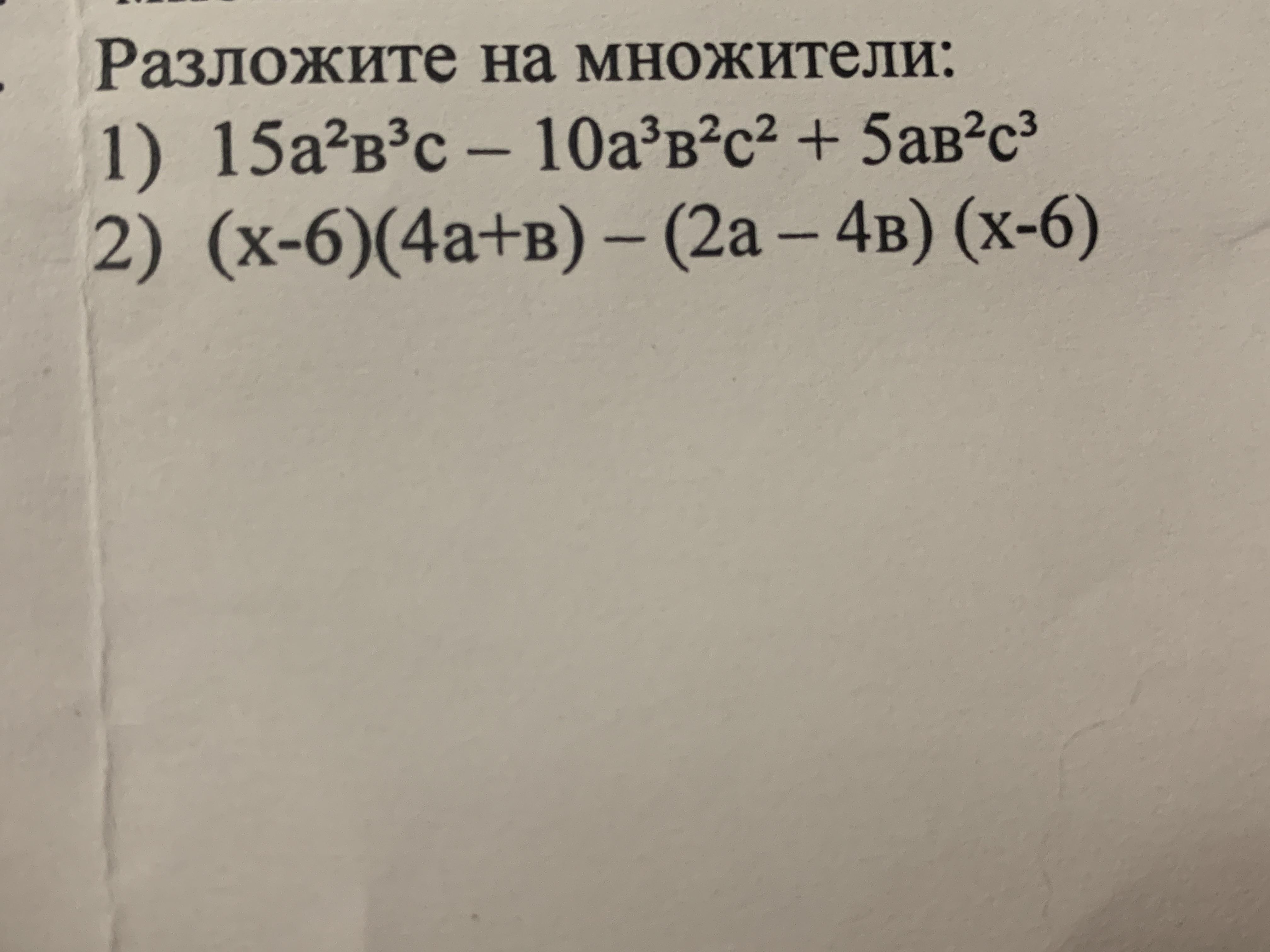 2) (х-6)(4а+в)-(2а-4в)(х-6) = (х-6)(4а+в-(2а-4в)) = (х-6)(4а+ в -2а+4в) = (х-6)(2а+5в)