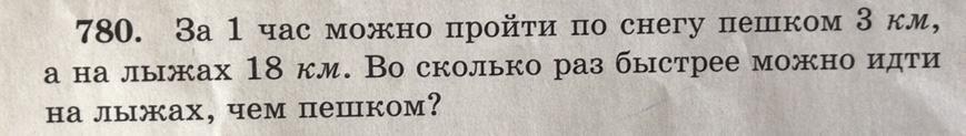 18:3= в 6 раз можно идти быстрее на лыжах, чем пешком
