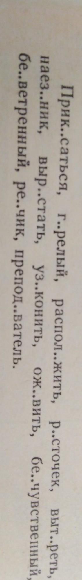 Прикасаться, горелый, расположить, росточек,вытереть, наездник, вырастать, узаконить, оживить,бесчувственный, безветренный, речник, преподаватель.