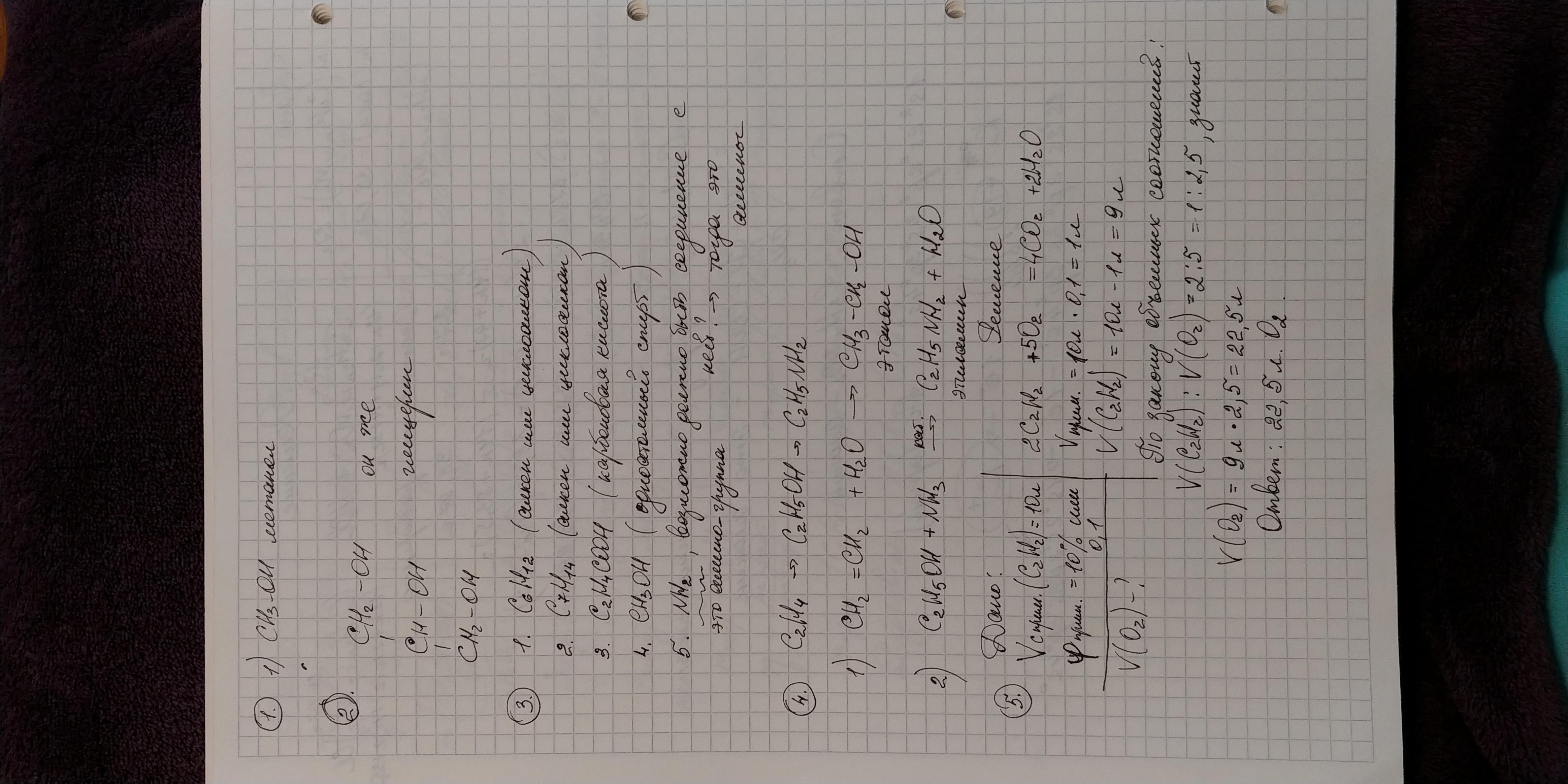 5.Какой объём кислорода потребуется для полного сжигания ацетилена объёмом 10 л, содержащего 10% примесей?