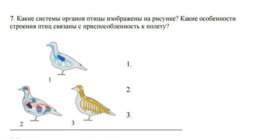 7. Какие системы органов птицы изображены на рисунке? Какие особенности