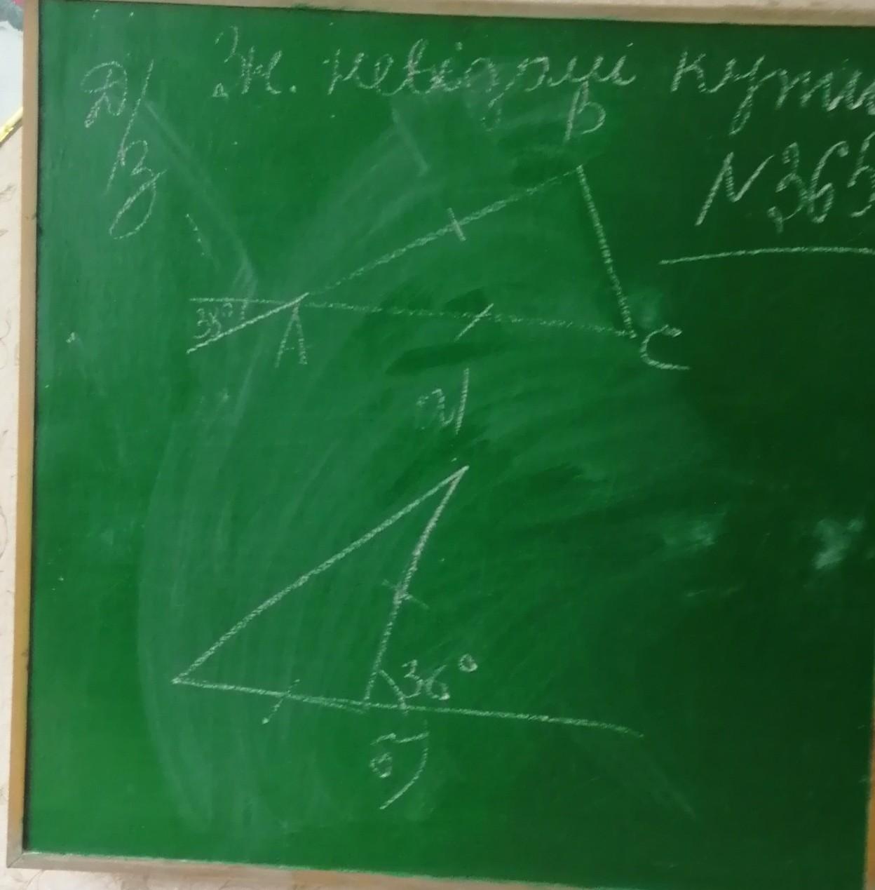 Два оставшихся внутренних угла треугольника аналогично с предыдущей задачей - равные углы при основании равнобедренного Δ: ∠1=∠2=(180-144)÷2=18°.