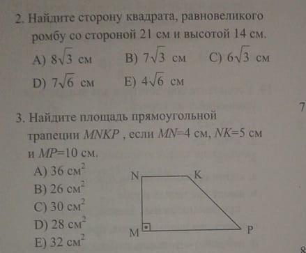 2) Smnkp=(MP+NK)*MN/2=(5+10)*4/2=30 cм² - С)