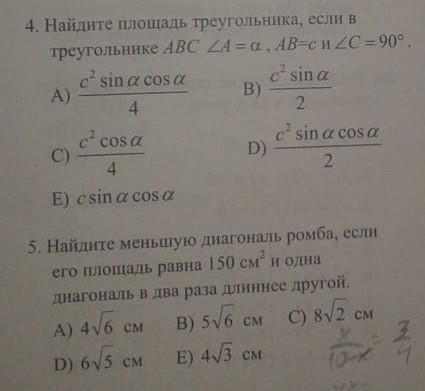 S=1/2*c*cosd*c*sind. Значит правильный ответ под буквой D