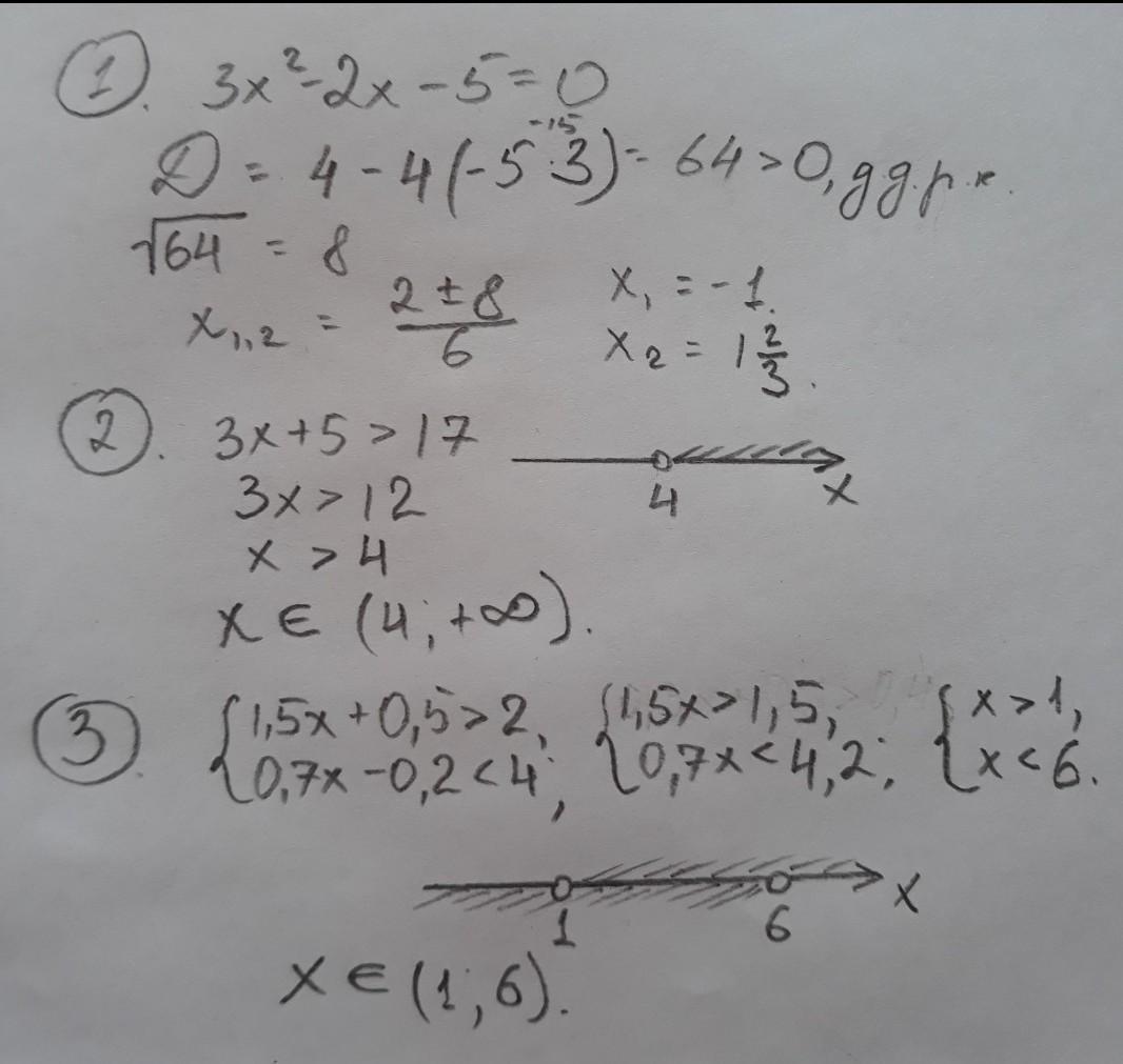 1. Решите квадратное уравнение 3x²-2x-5=0