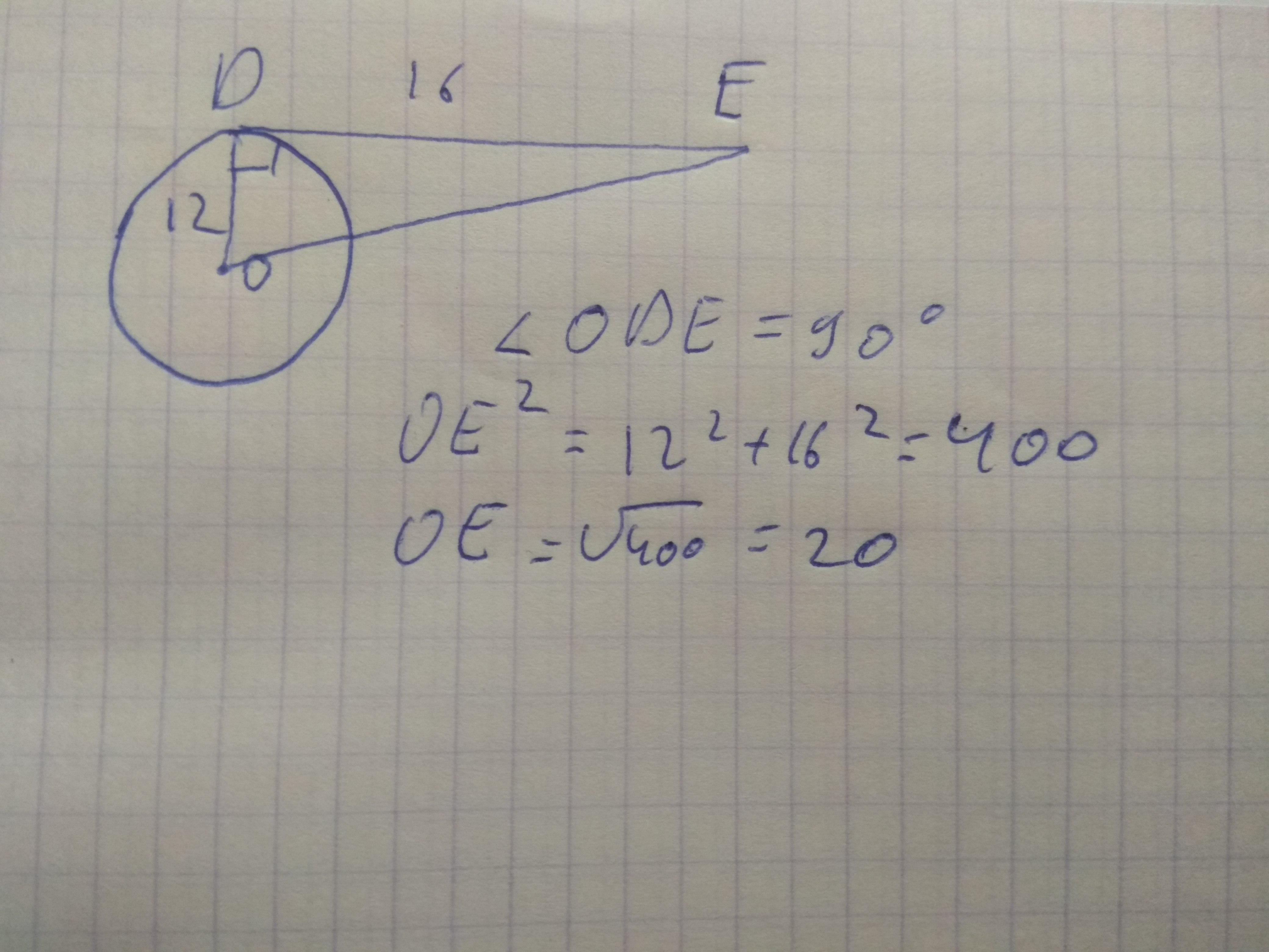 Объяснение: решается с помощью теоремы Пифагора . Касательная всегда касается круга перпендикулярно радиусу . Решение на прикрепленной фотке.