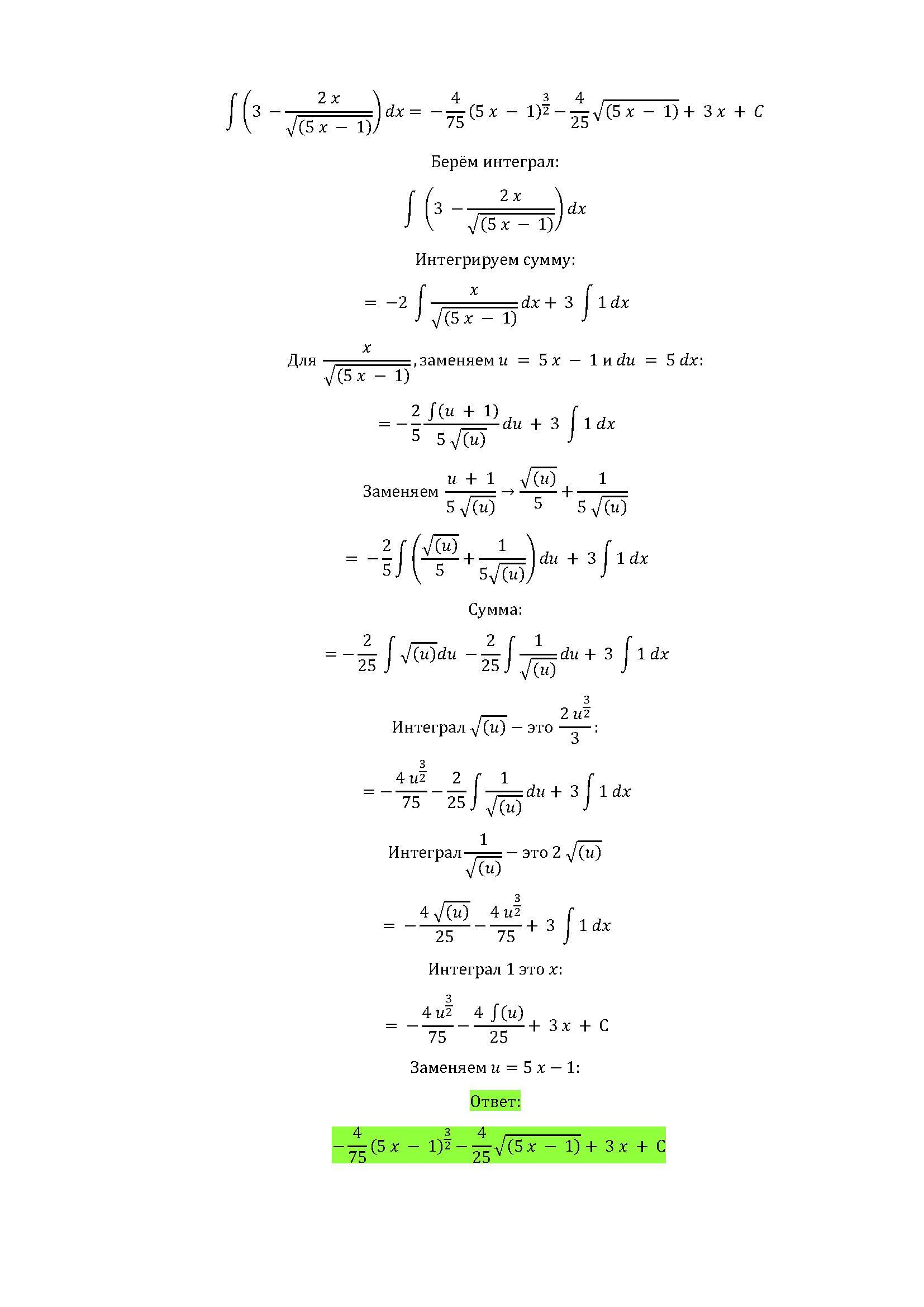 -4/75 (5 x - 1)^(3/2)-4/25 √((5 x - 1) )+ 3 x + С
