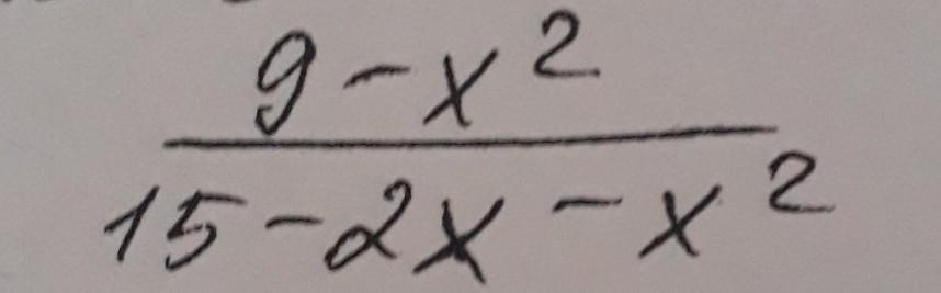 (9-х²)/(15-2х-х²) = (3-х)(3+х)/(-х²-2х+15) = -(х-3)(х+3)/(-х²+3х-5х+15) = -(х-3)(х+3)/-х(х-3)-5(х-3) = -(х-3)(х+3)/-(х-3)(х+5) = х+3/х+5