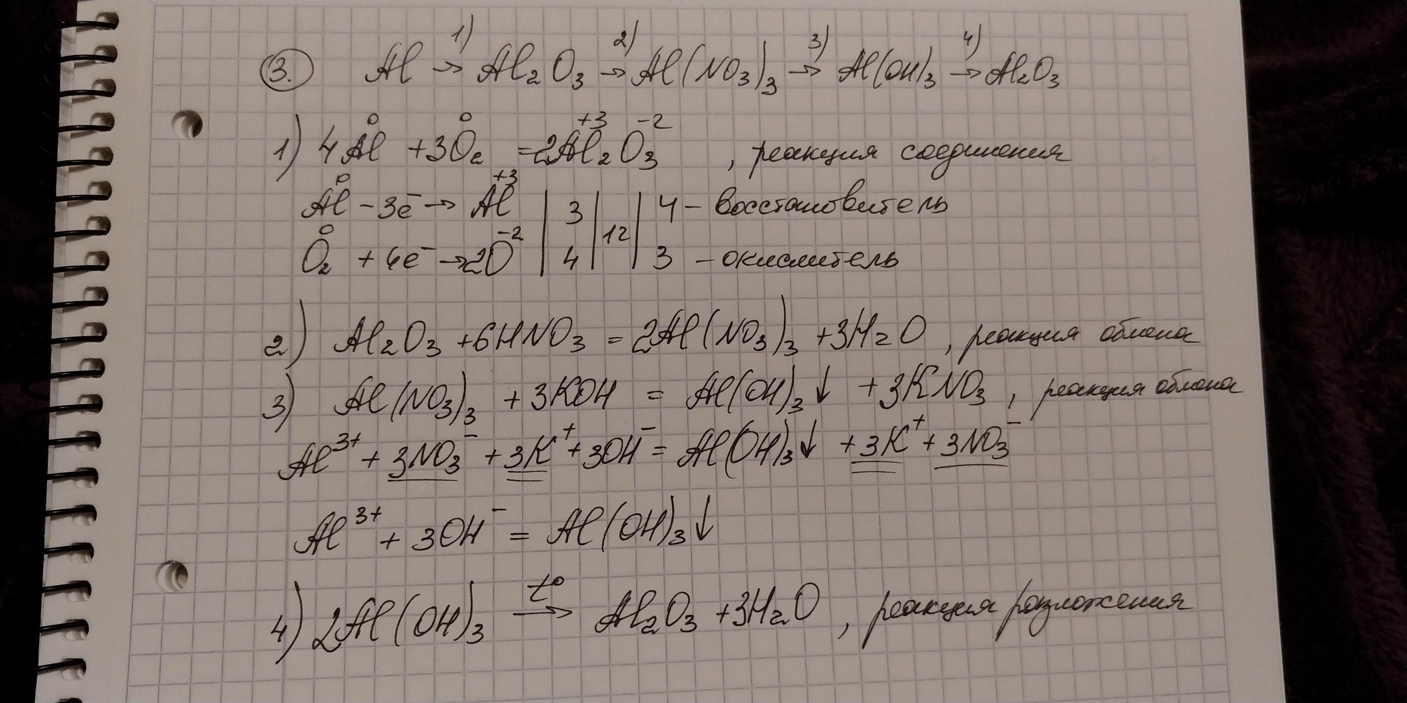 3. 4Al⁰ + 3O₂⁰ = 2Al₂O₃ ОВР, р-я соединения
