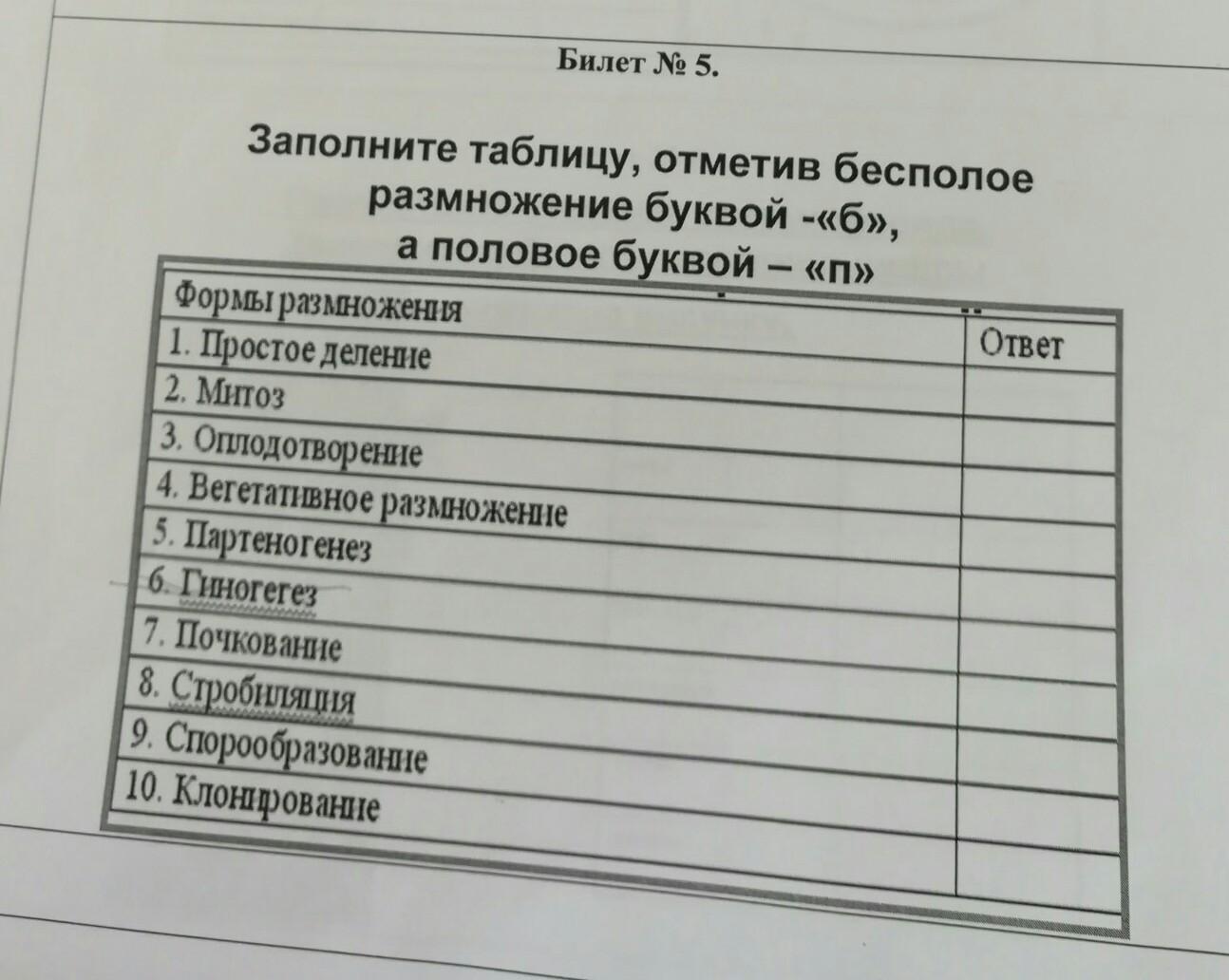 заполните таблицу отметив безполое размножение буквой б а половое буквой п