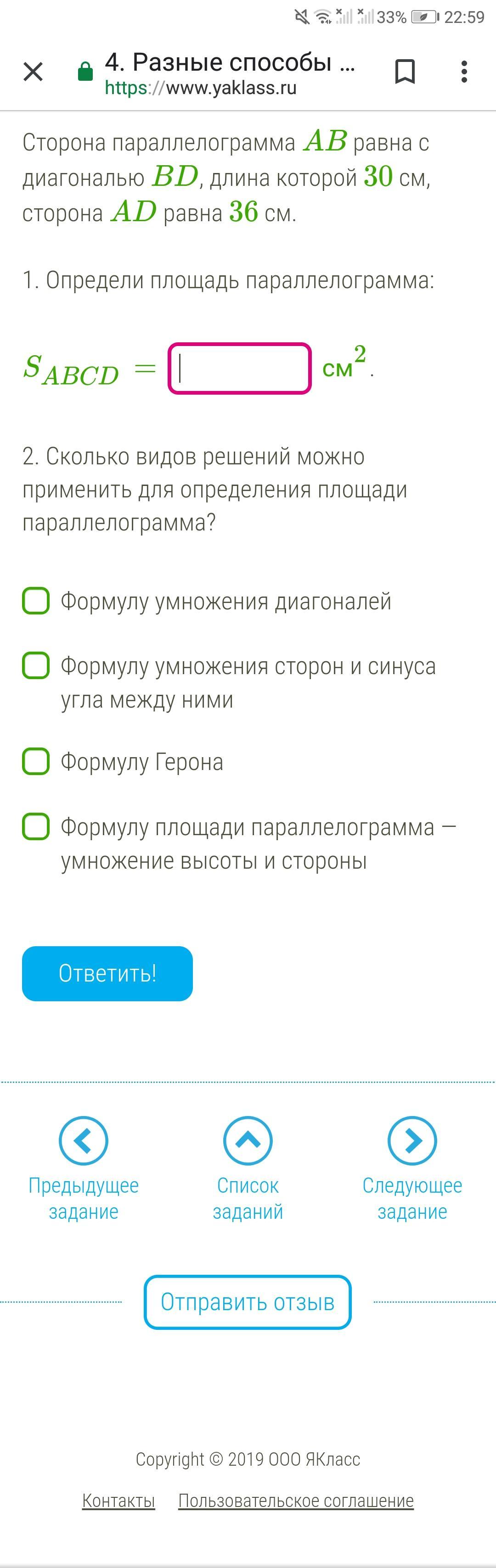 я использовала формулу Герона, но можно сделать больше вычислений и использовать, например, формулу с синусом. Но здесь лучше так