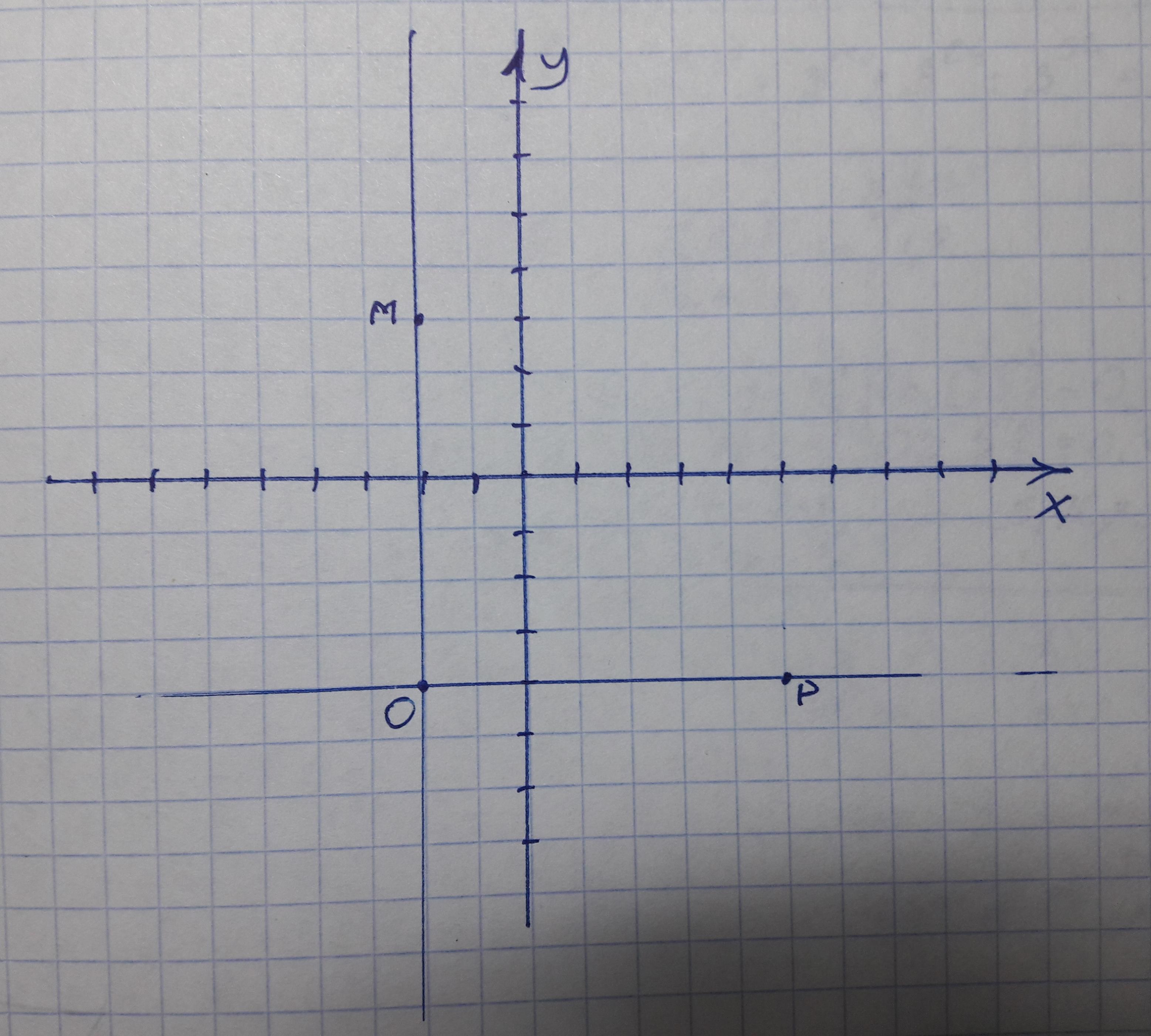 На координатной плоскости отметьте точки М(-2;3) и Р(5;-4). Через точку М проведите прямую перпендикулярную оси абсцисс, а через Р прямую оси ординат. Найдите координаты точек пересечения этих прямых с осями координат.