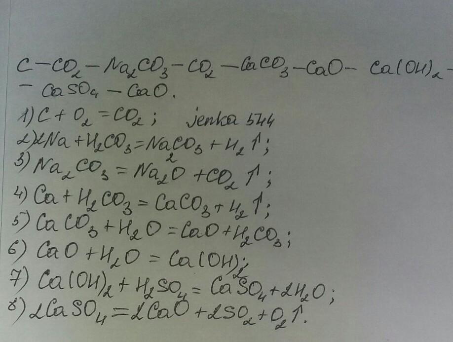 C->CO2->Na2CO3->CO2->CaCO3->CaO->Ca(OH)2->CaSO4->CaO