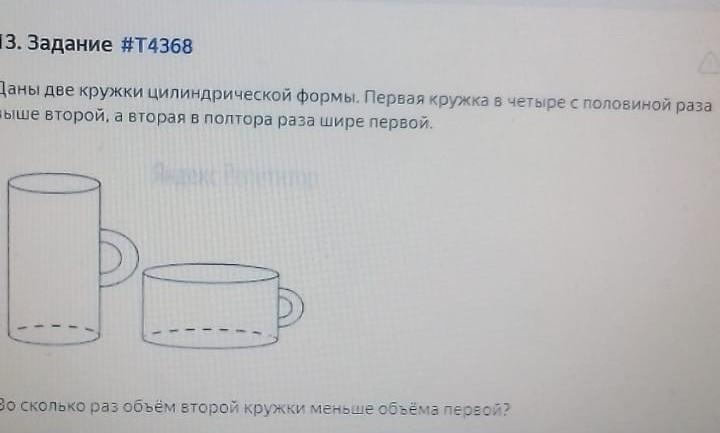 Ответ: Объём второй кружки меньше объёма первой в два раза