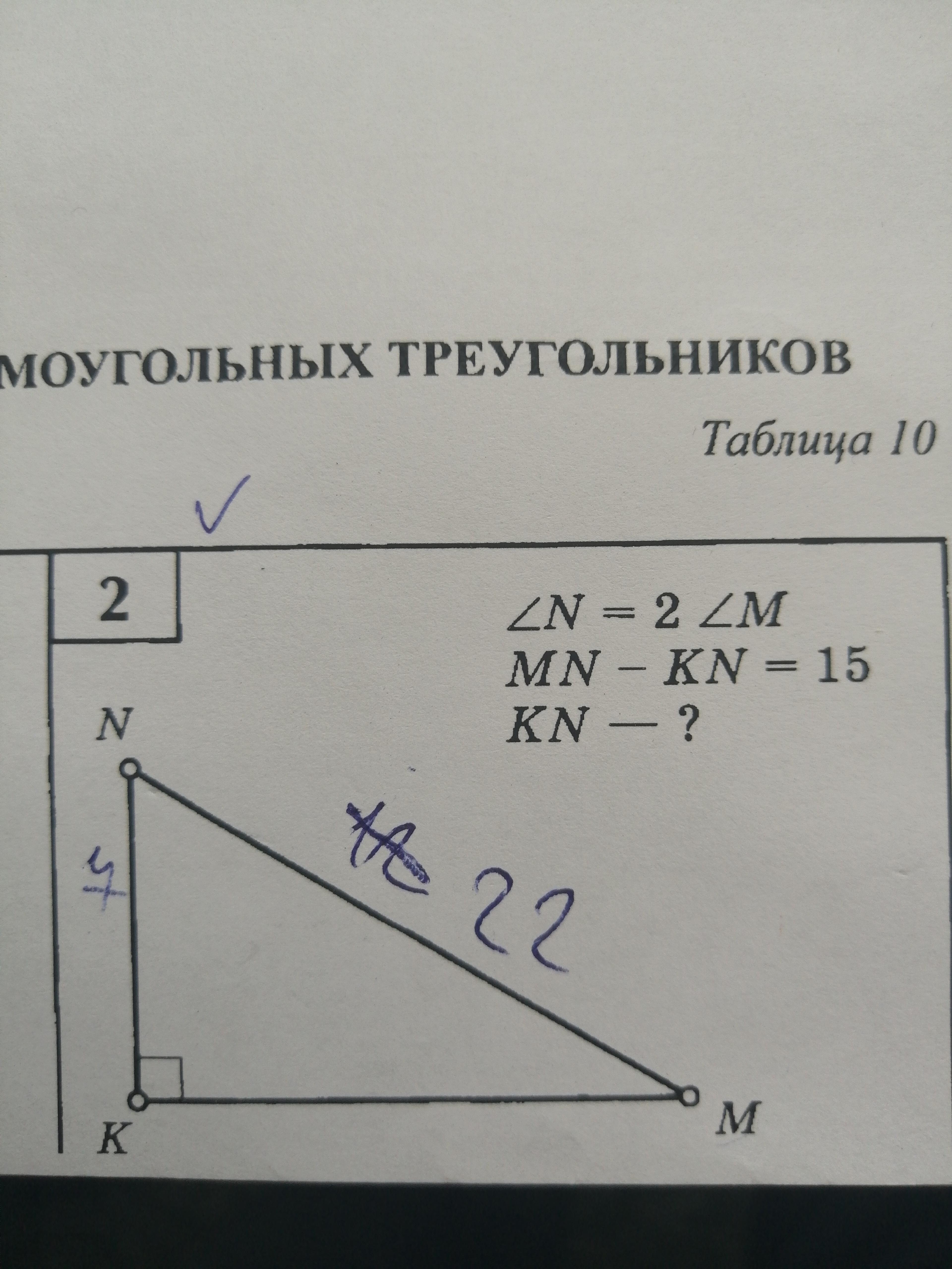 ∠N + ∠M = 90° ⇒ 2∠M + ∠M = 90° ⇒ ∠M = 30° тогда ∠N = 60°