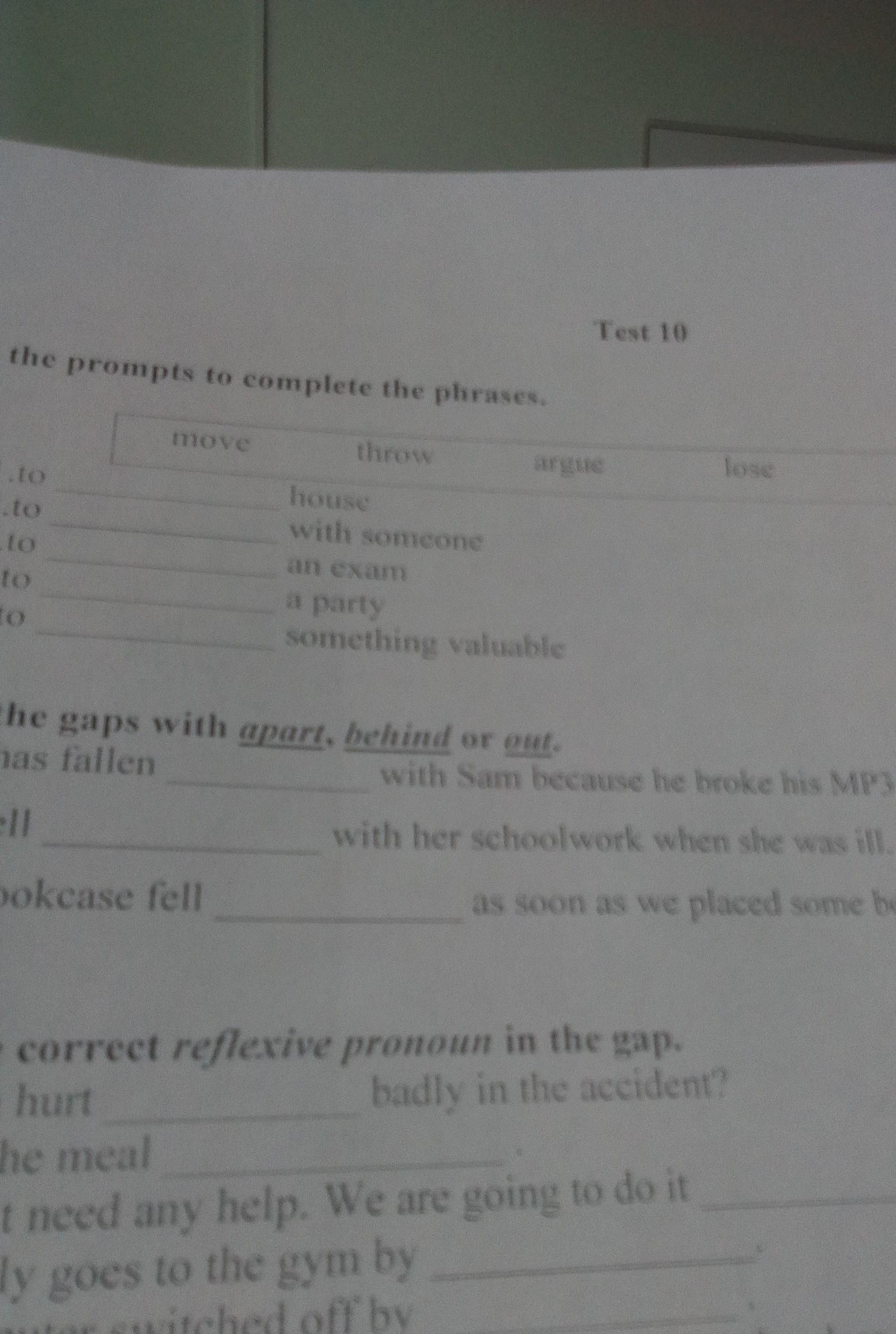 to move house, to argue with someone, to pass/ to take an exam, to theow a party, to find something valuable