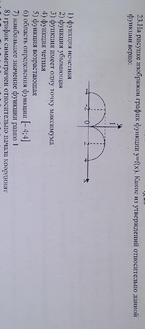 7. наибольшее значение функции - это наибольшее значение у (точка максимума). по графику видим, что наибольшее у действительно равно 1 - утверждение верно