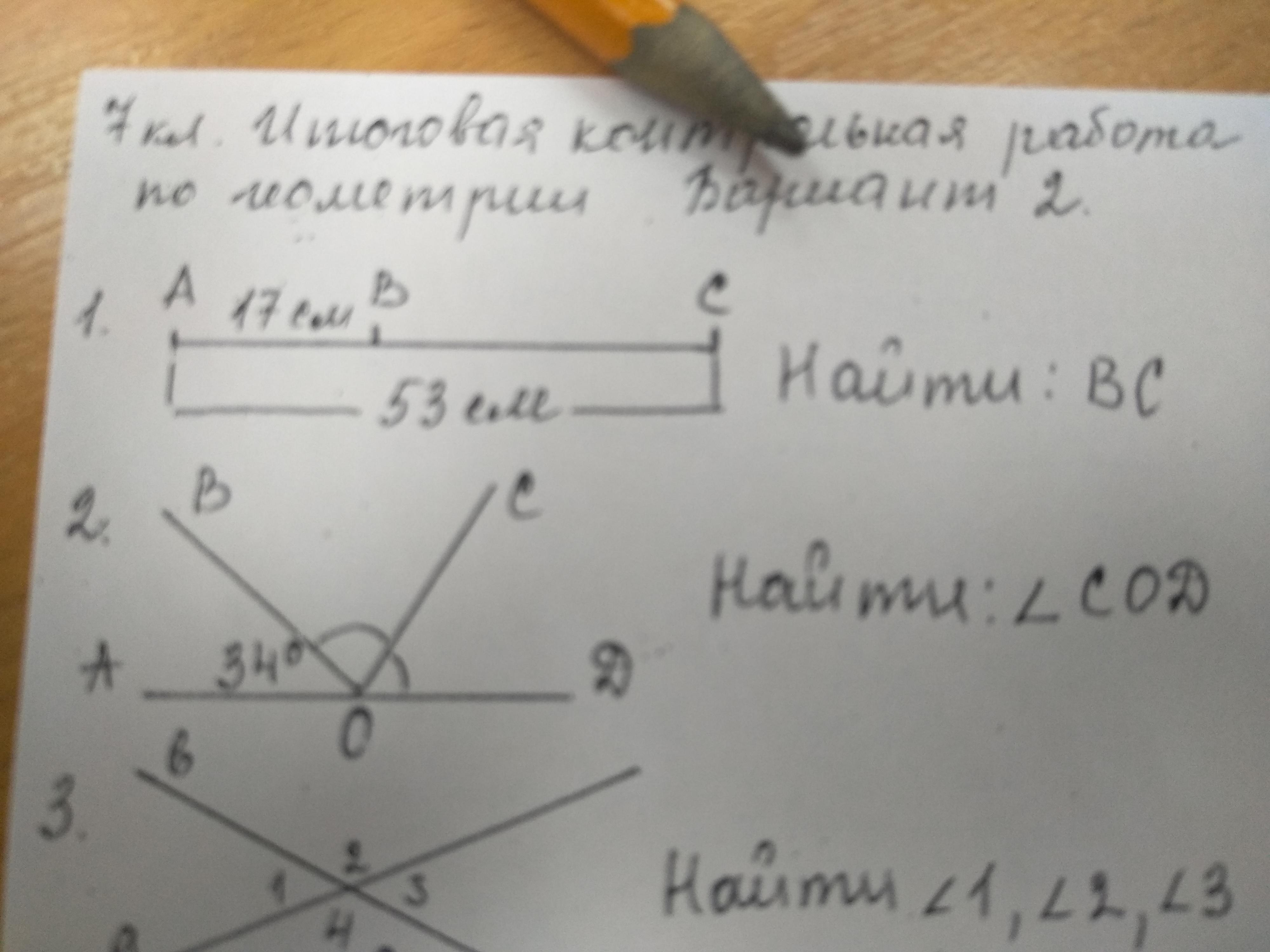 угол АОВ и угол ВОС - смежные, их сумма равна 180° => угол ВОС=180-34=146°