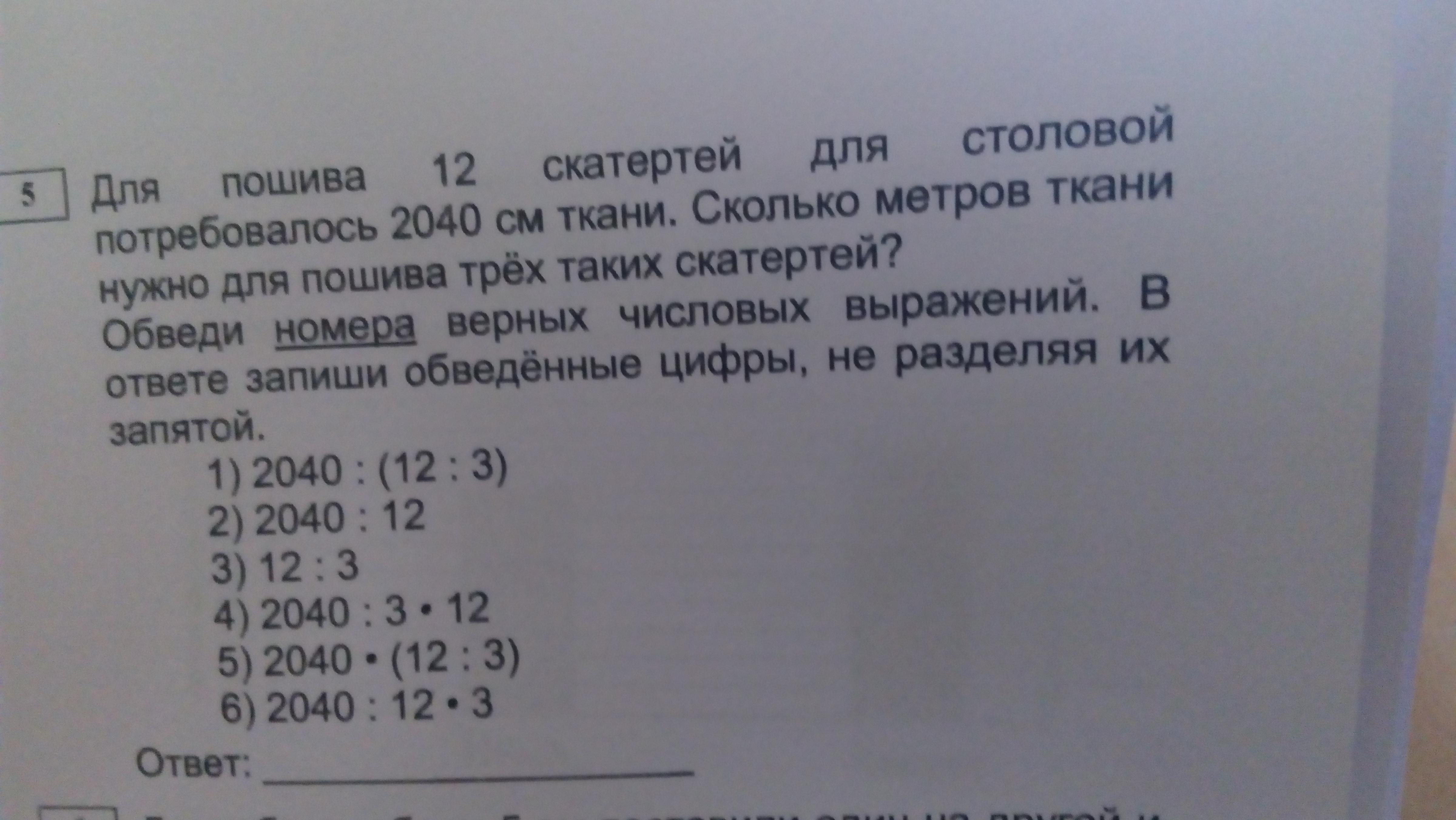 2040:12=170(см) 1 скатерть.