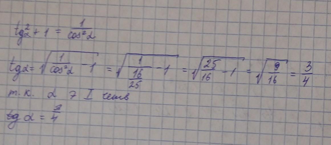 tg a = sin a / cos a = (3/5)/(4/5) = 3/4