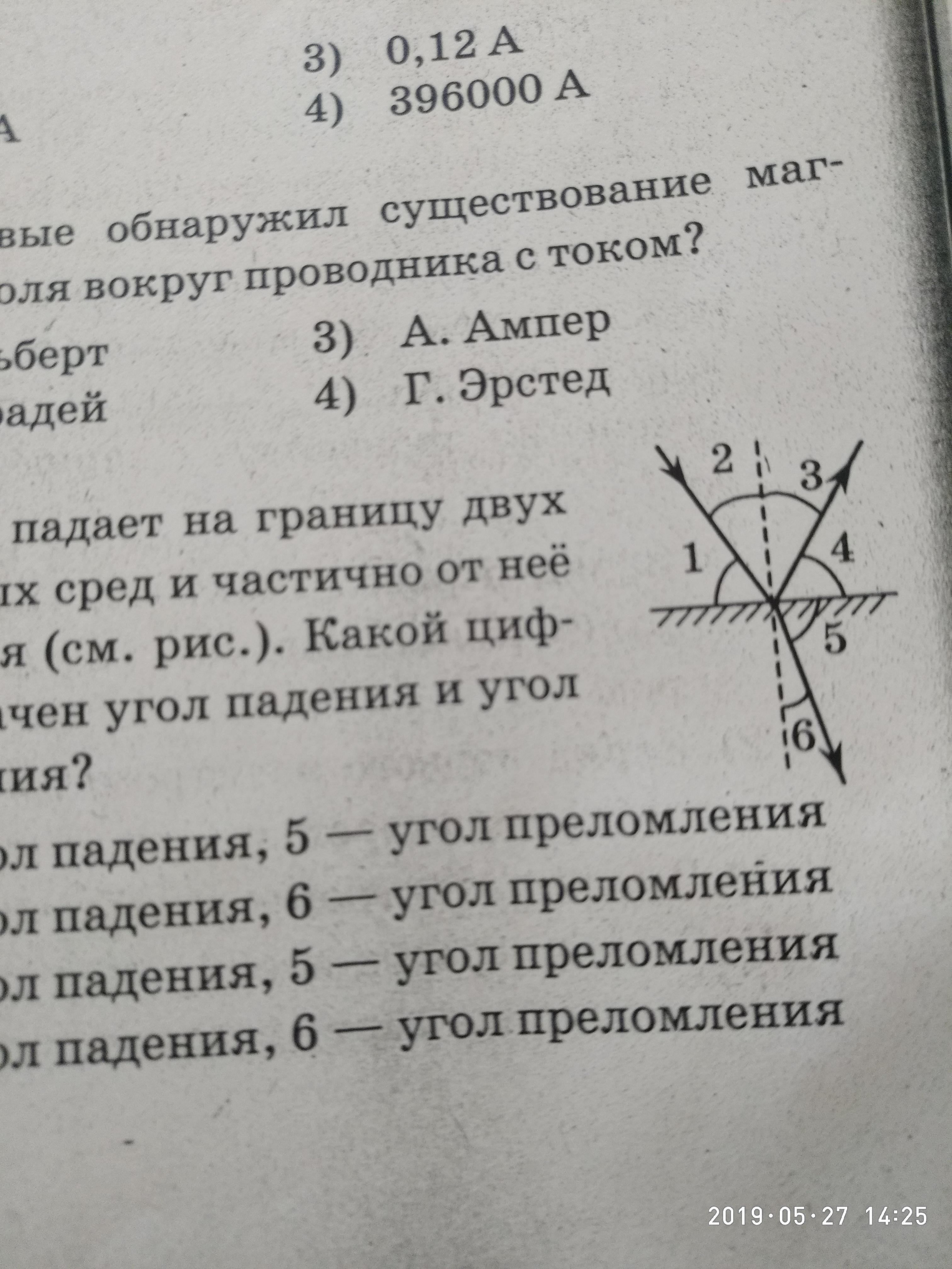 луч света падает на границу двух прозрачных сред и частично от нее отражается. Какой цифрой обозначен угол падения и угол преломления