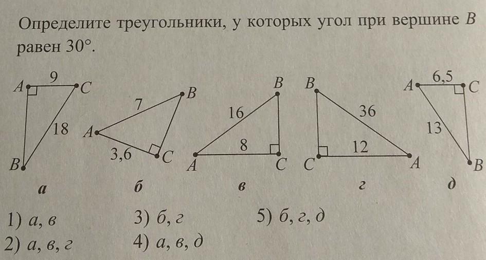 В других вариантах катет, который лежит напротив ∠В, не равен 1/2 гипотенузы, поэтому такой угол не может быть равен 30°. Так: