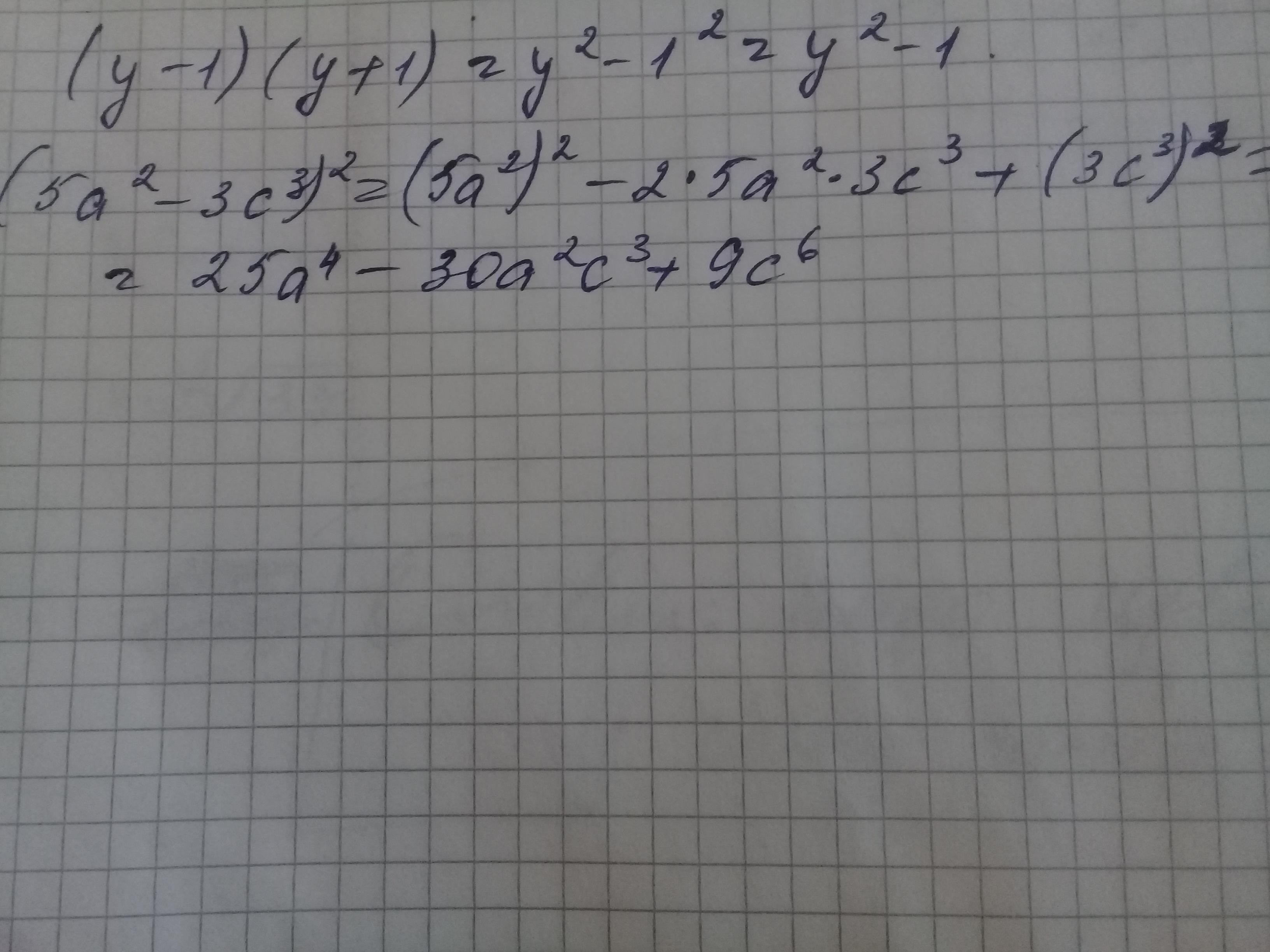 (5a²-3c³)²=25a^4+30a²c³+9c^6