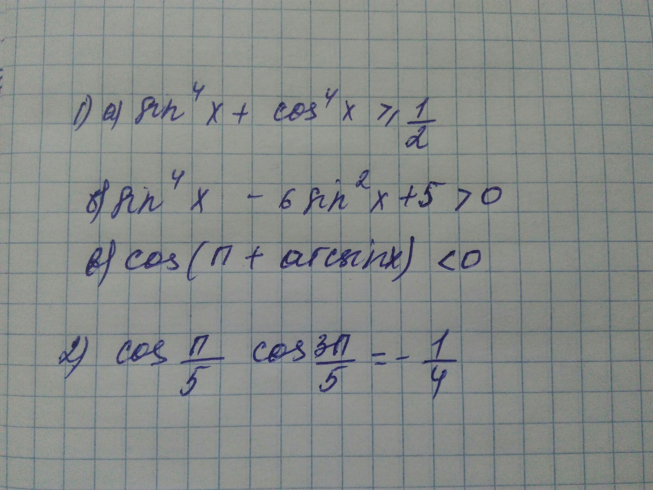 Вывод: cos(pi+arcsin(x) )<=0 (и снова ошибка неравенство должно быть строгим!) Выполняется когда x=+-1