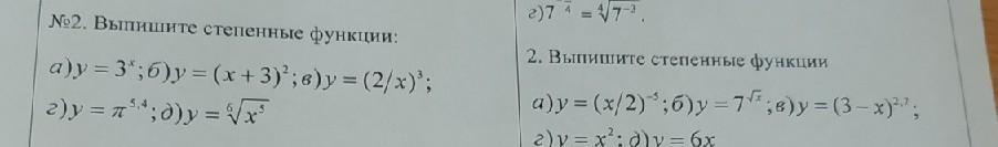 Я бы назвал степенными функции у=(х+3)²; у=корень шестой степени из икс в кубе, ведь это у=х³/⁶, у=(3-х)²,⁷ ; у=х²; и т.д... в основании буква, в показателе число.