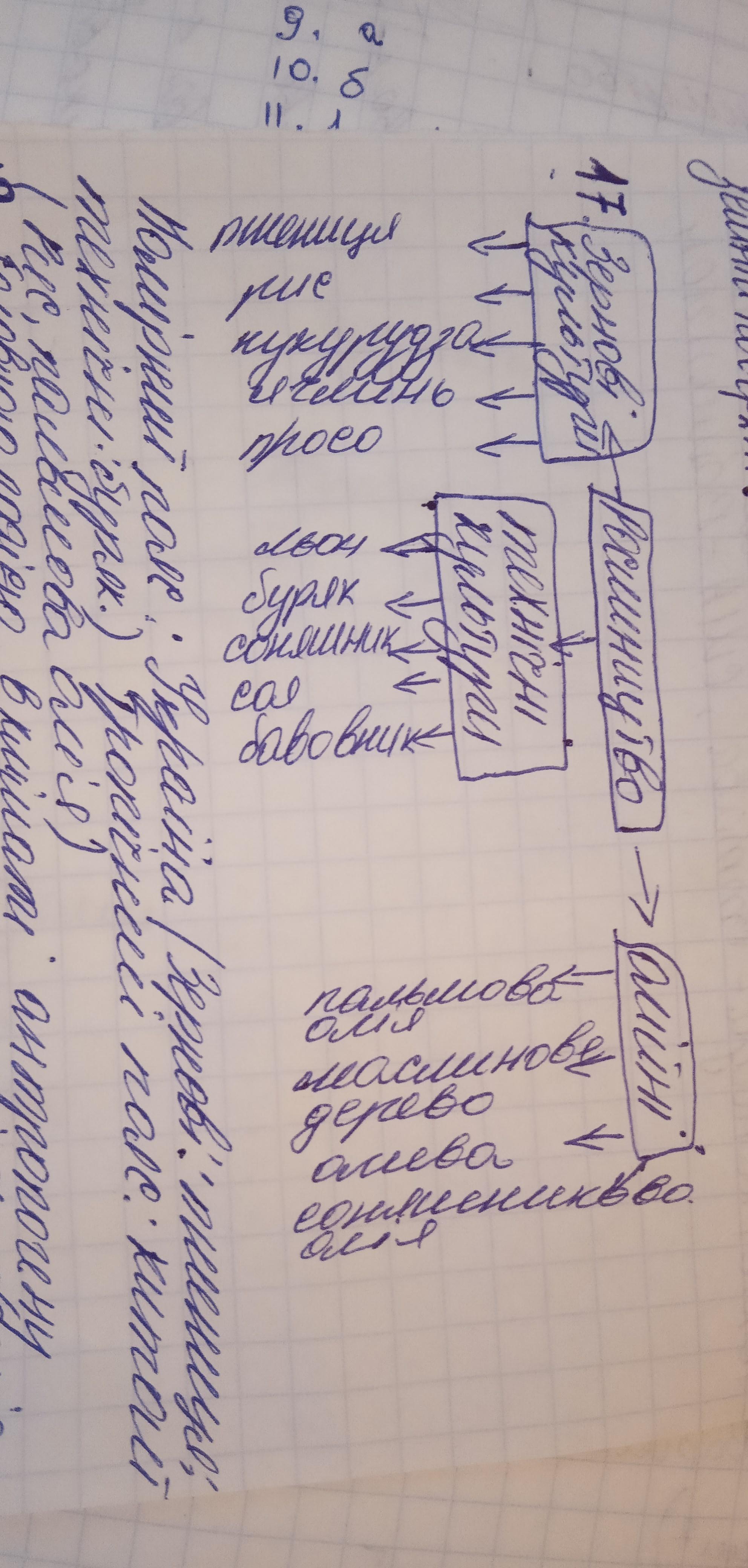 Накресліть схему структури рослинництва світу, позначте на ній 2 галузі спеціалізіції країн помірного та 2 галузі спеціалізації країн тропічного клімату.