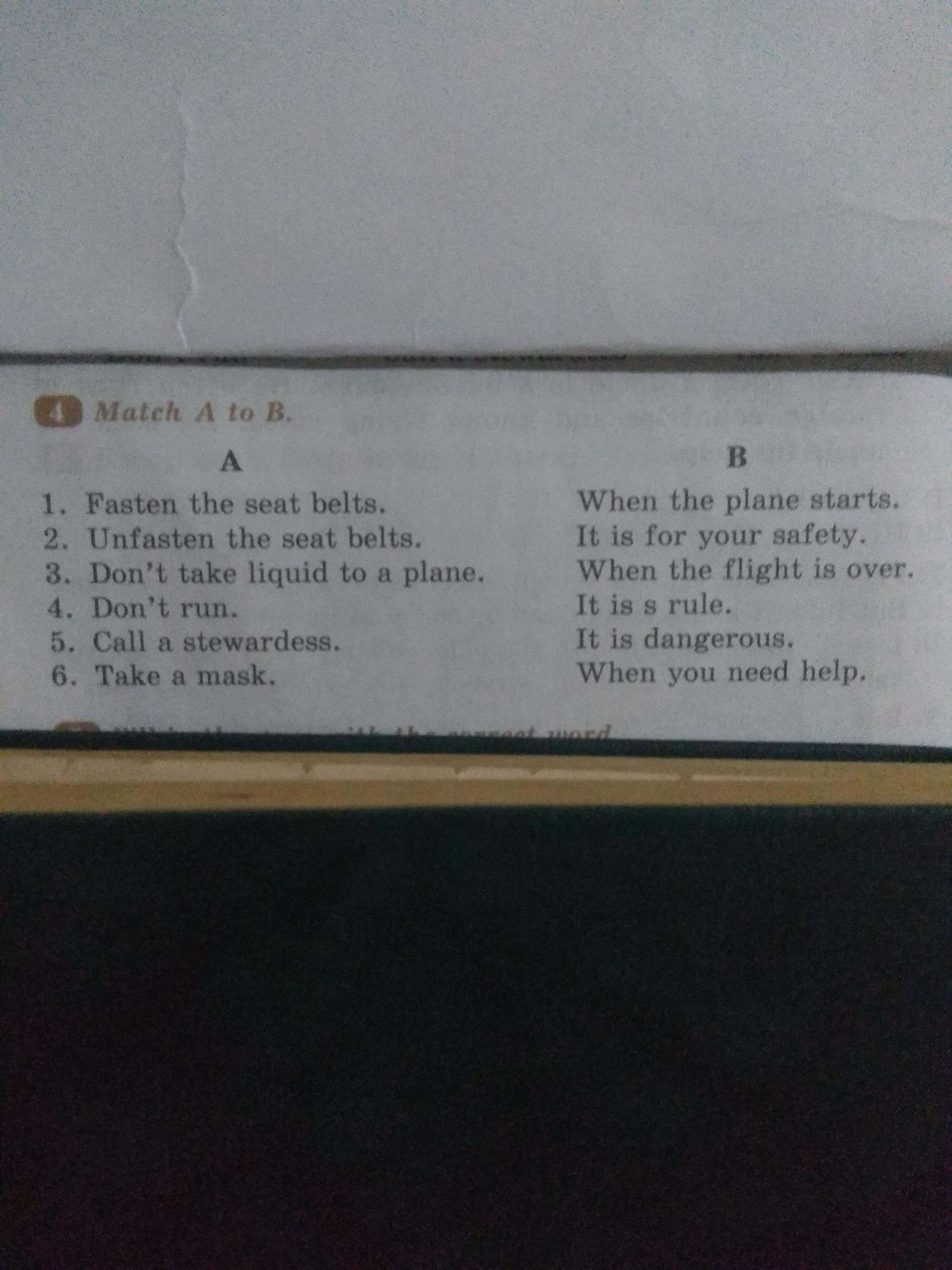 1) Fasten the seat belts when the plane starts. Не отстёгивай ремни безопасности, когда самолёт взлетает.
