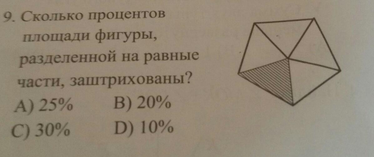 а так как заштрихована только одна часть ответ и будет 20 проц