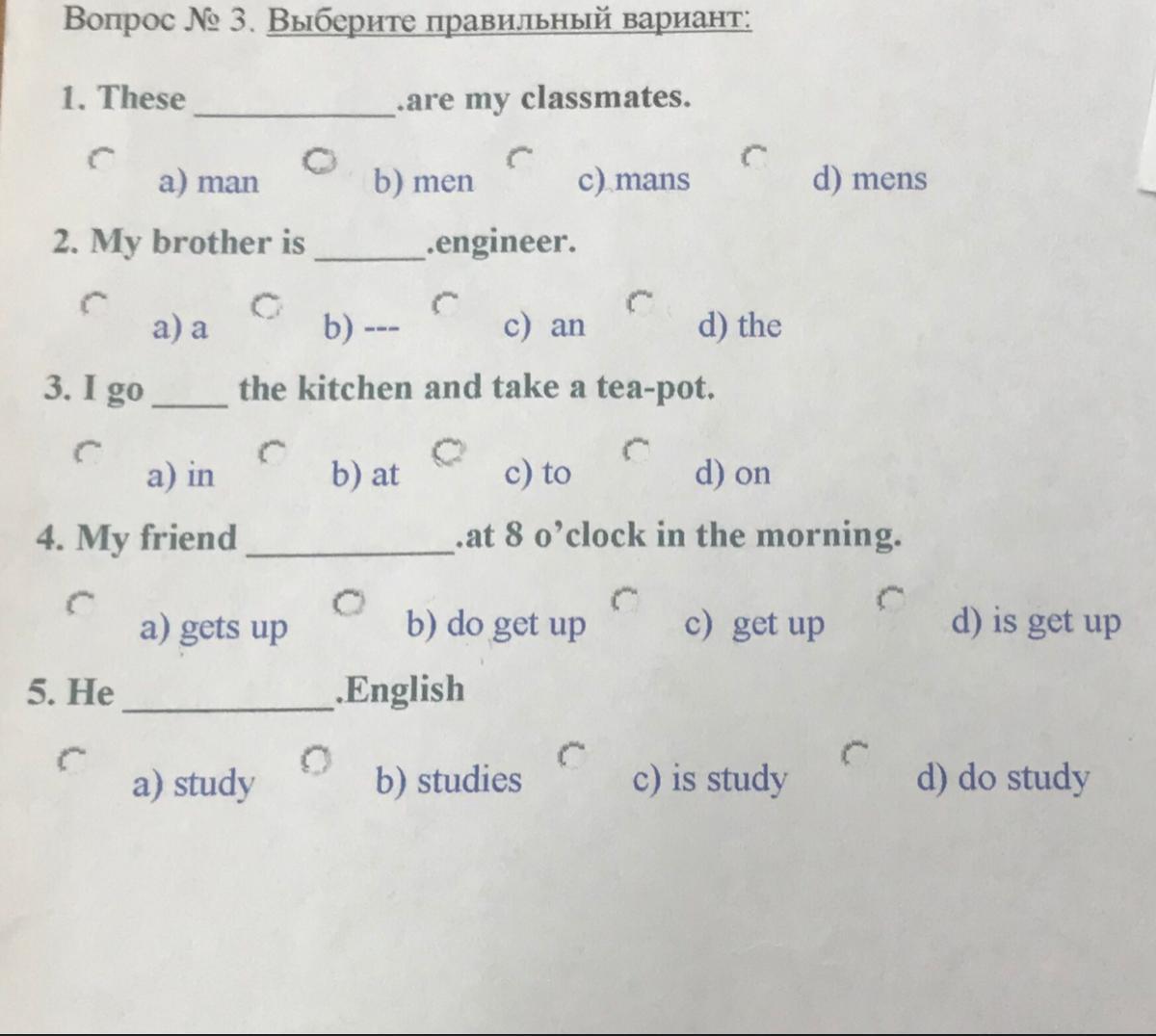 1)b,men-так слово"мужчина"употребляется в мн.ч.