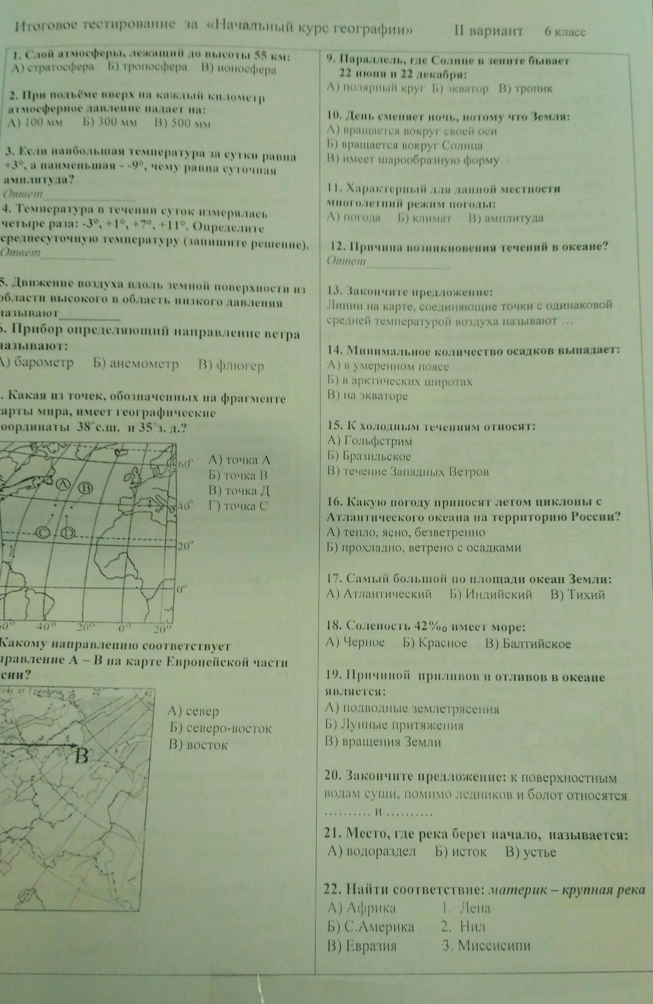 9)а 10)а 11)б 12)из за течения ветров 14)а 15)а 16)б 19)б 20)реки и озера 21)в 22)а-2 б-3 в-1