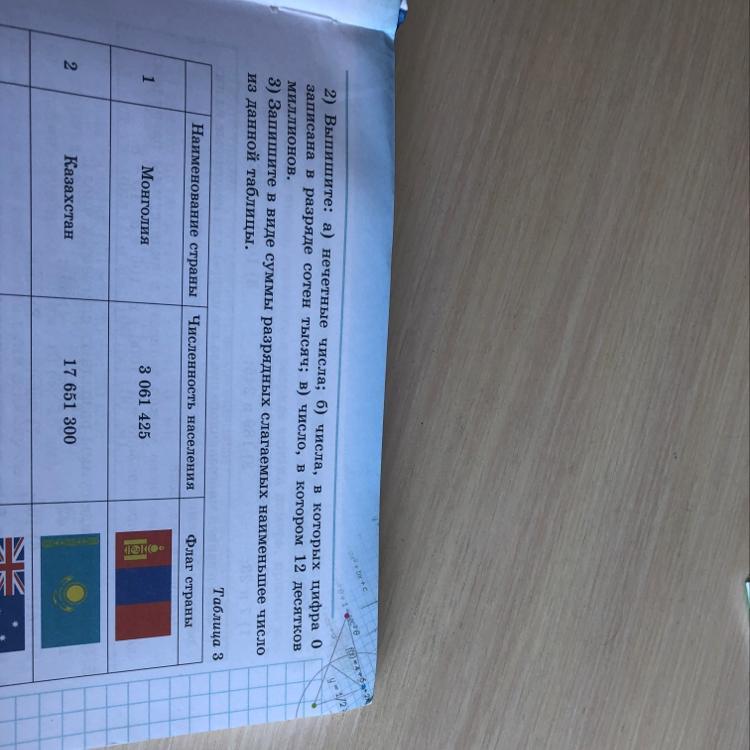 Прочитайте числа,показывающие численность населения: Земли на начало 2016 года,если она достигла 7309680851 человек, и стран, указанных в таблице 3.