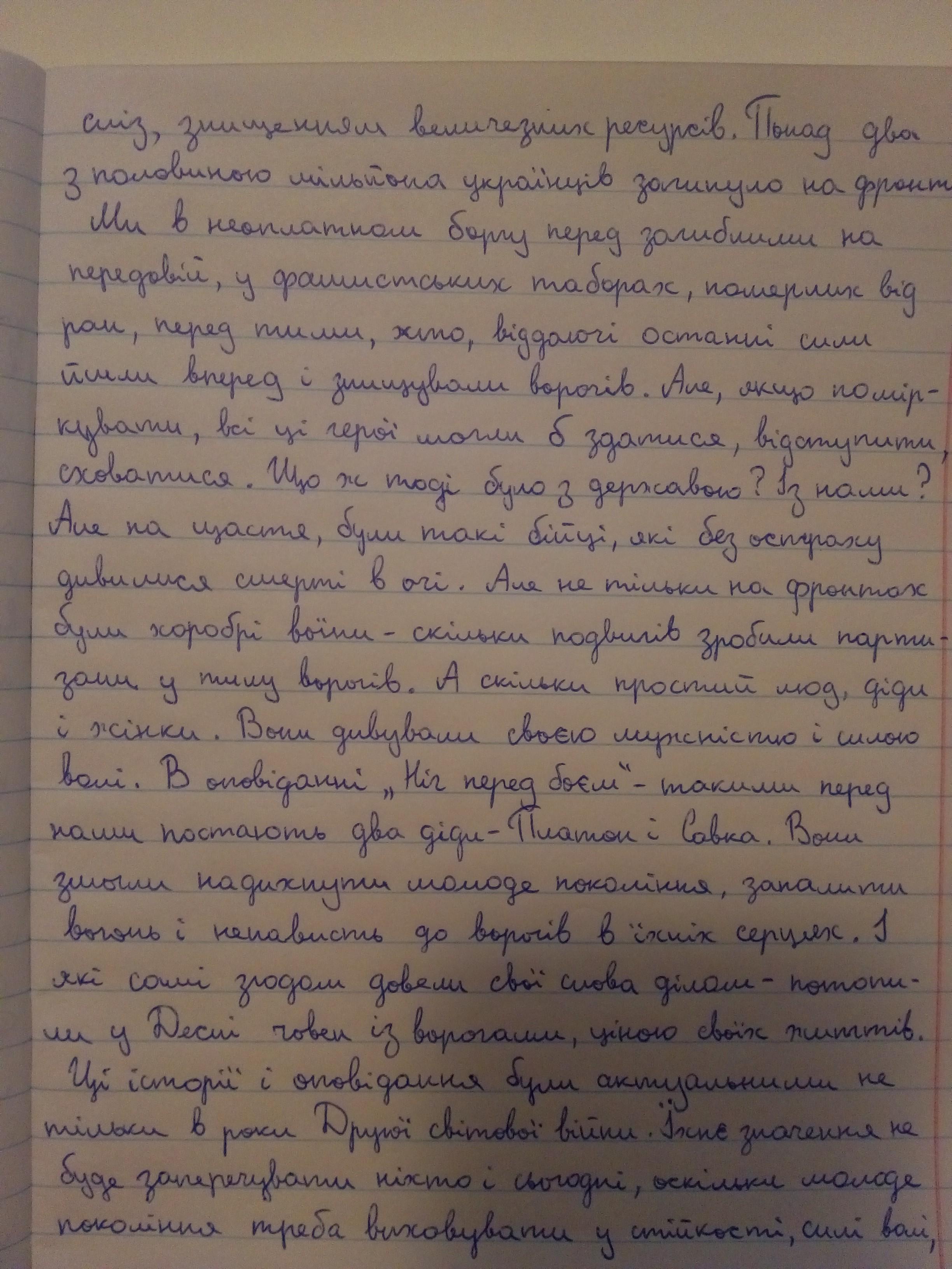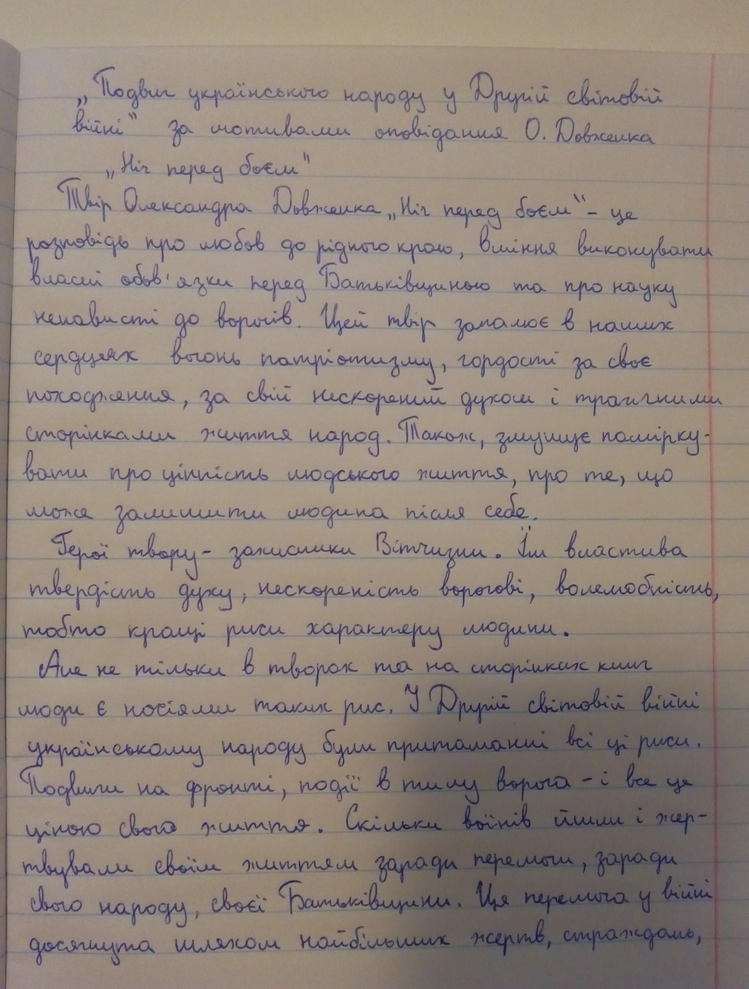 Твір «Подвиг українського народу у Другій світовій війні» за мотивами оповідання О. Довженка "Ніч перед боєм"