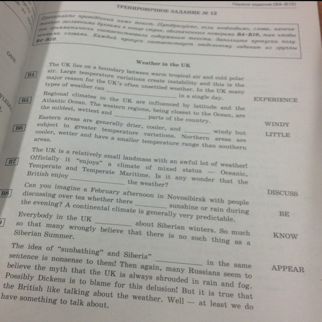 B4 experience B5 the most windy B6 less B7 discussing B8 was B9 know B10appears