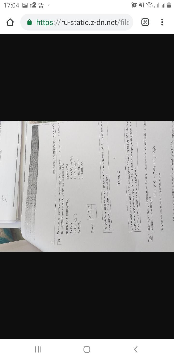 20) 4HCl+MnO2=MnCl2+Cl2+2H2O