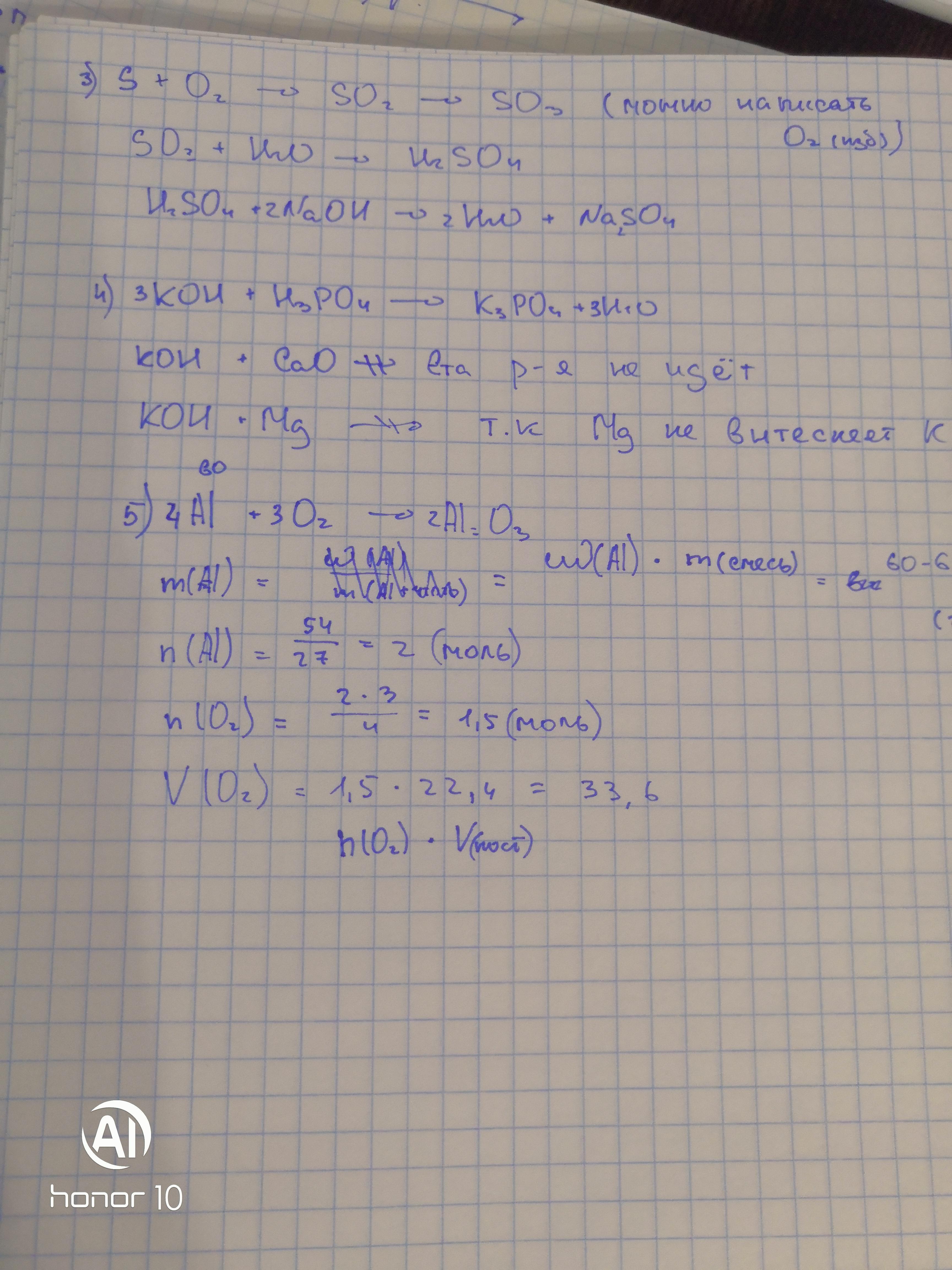 5. Определить какое количество и объём кислорода требуется для горения 60г. алюминия, содержащего 10% негорючих примесей