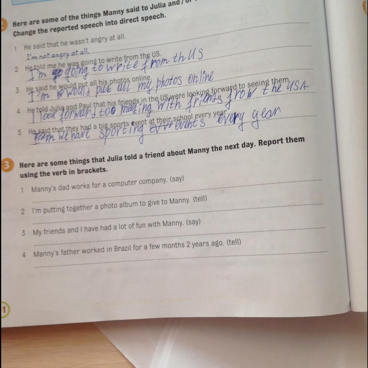 2. Julia told her friend that she was putting together a photo album to give to Manny. (tell)