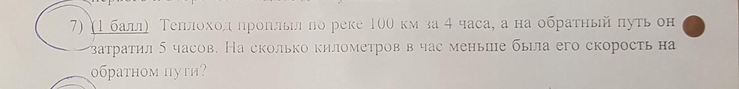 Ответ: Скорость теплохода на обратном пути была на 5 км меньше, чем скорость теплохода туда