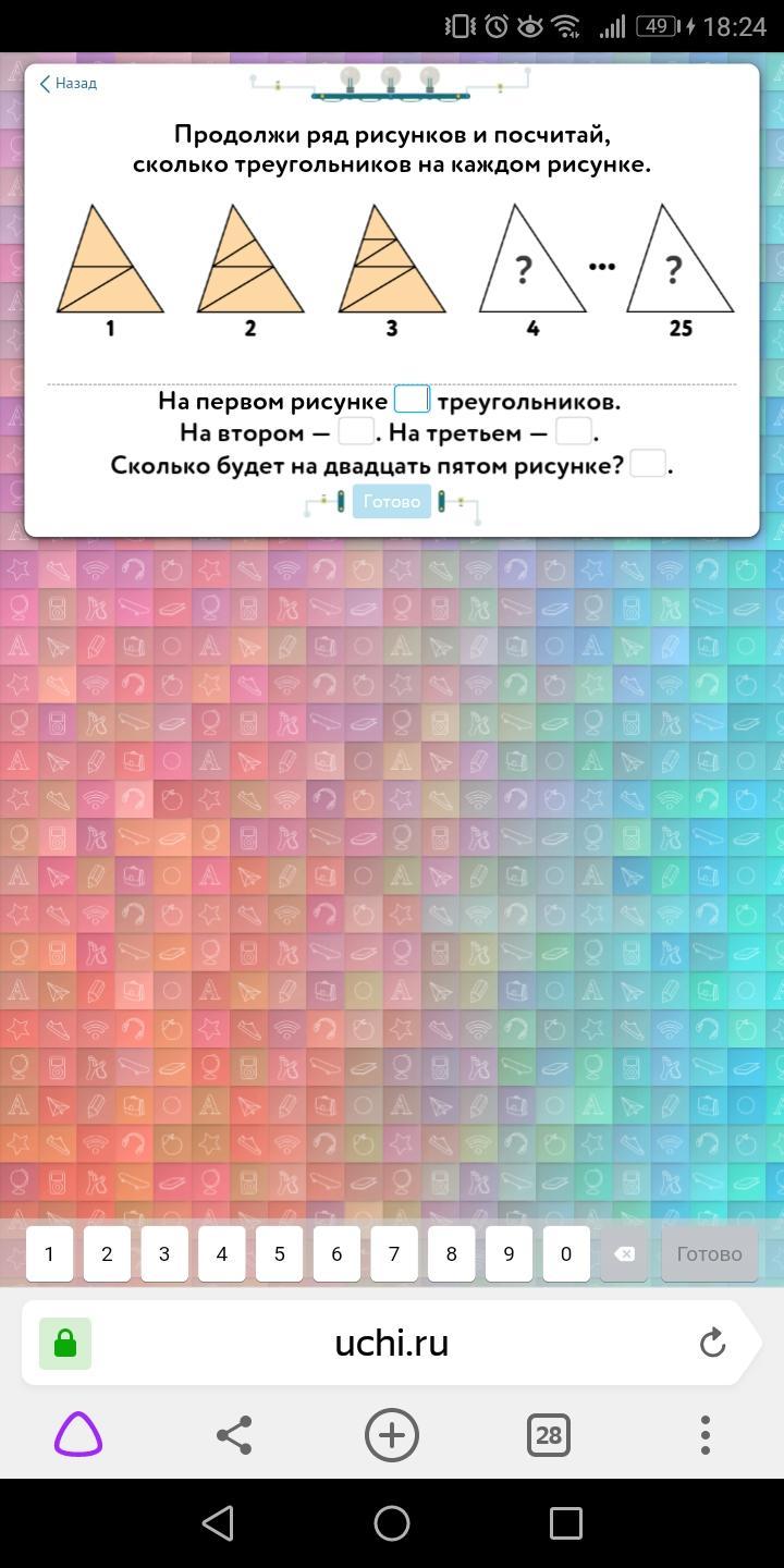 значит на каждом рисунке будет на 2 больше, чем на предыдущем.