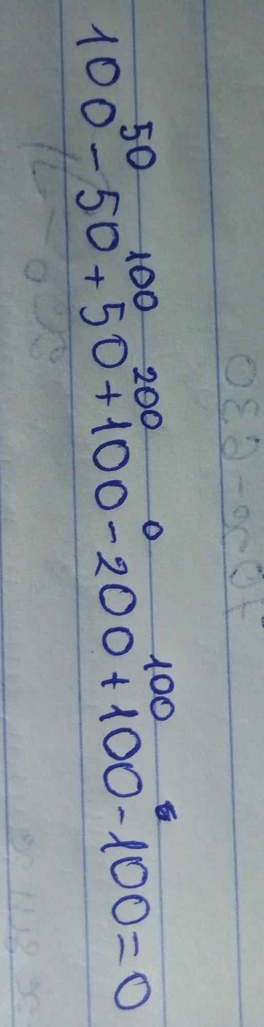 Пошаговое объяснение:50+50=100+100=200-200=0+100=100-100=0