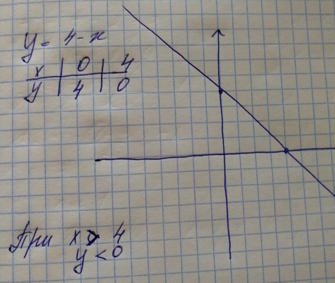постройте график функции у=4-х пользуясь построенным графиком установите при каких значениях аргумента функция принимает отрицательные значения