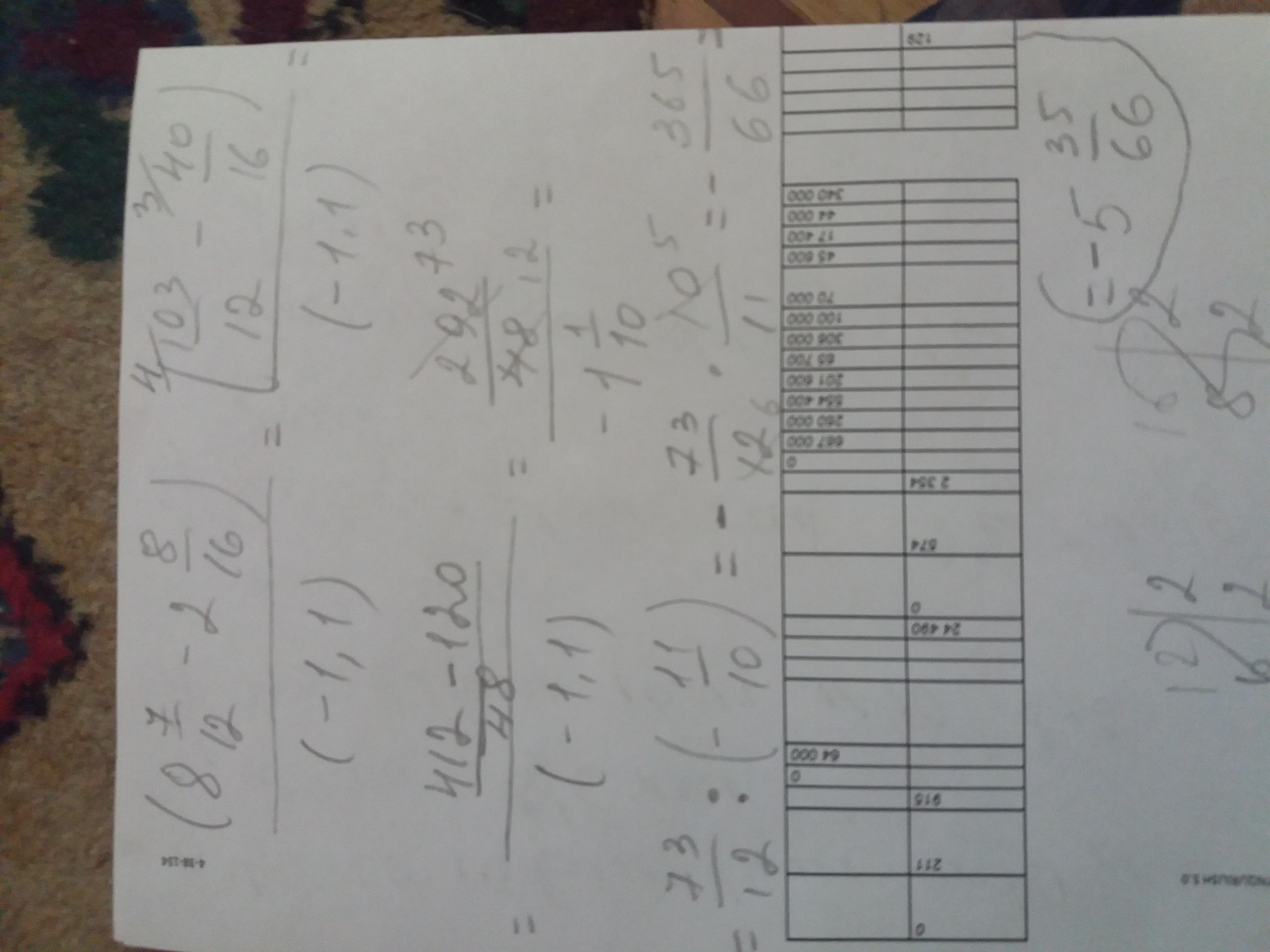 ( 8 7/12 - 2 8/16) / (-1.1) = -5 35/66