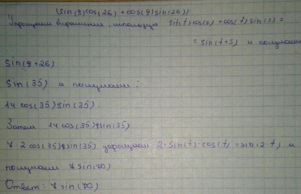 14cos(35)sin(35). затем опять упрощаем и получаем ответ