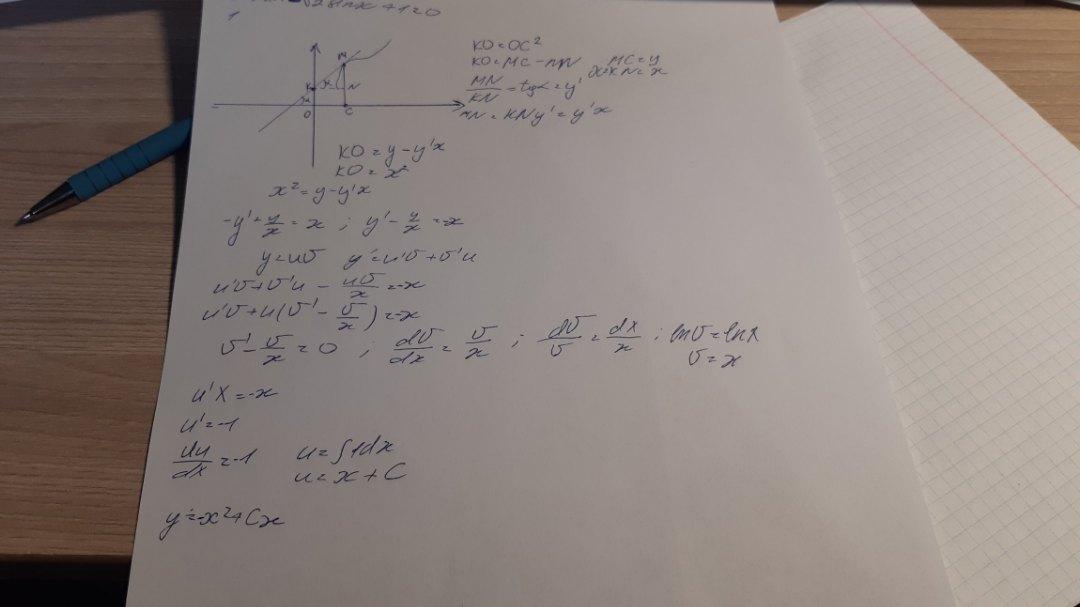 Найти уравнение линии, у которой отрезок, отсекаемый касательной в любой точке кривой на оси Оу, равен квадрату абсциссы точки касания.